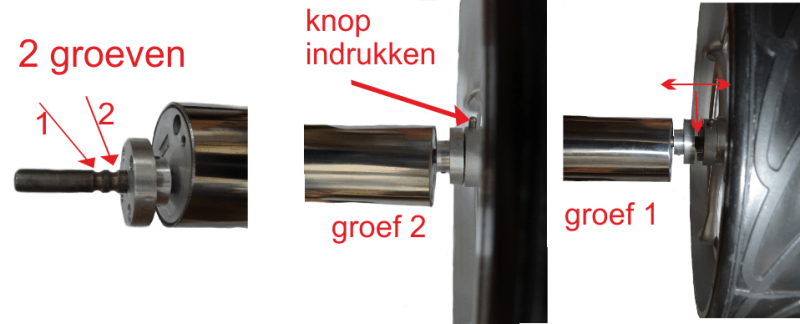 Press the button on the wheel and slide the wheel back a little. Then it falls into groove 1 (picture 3). You immediately feel that it runs smoothly.